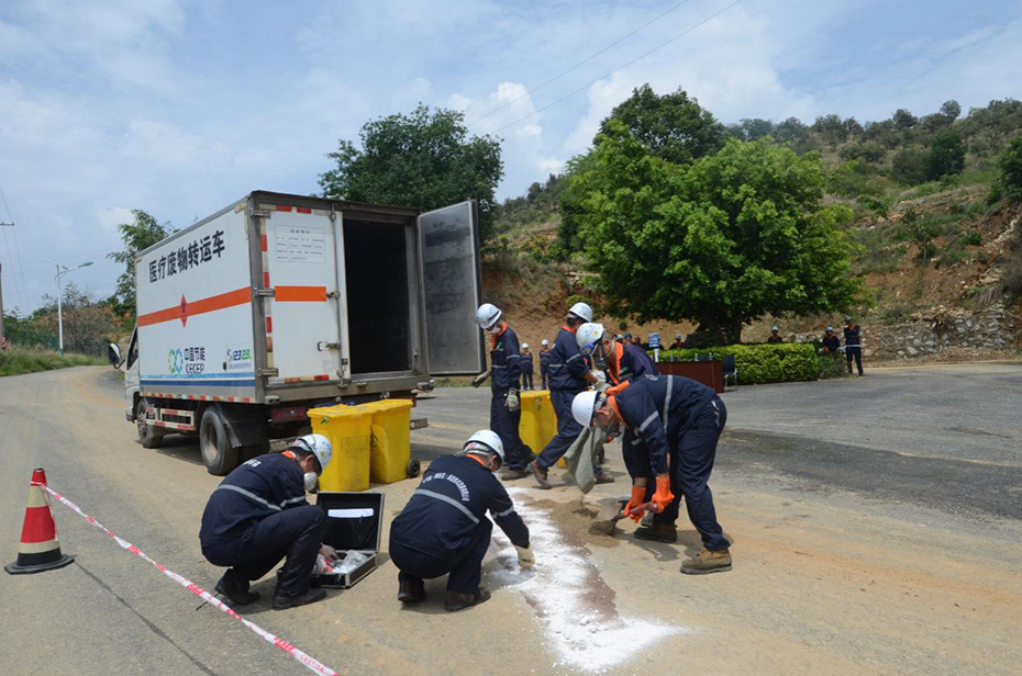 為進(jìn)一步加強(qiáng)醫(yī)療廢物收運(yùn)過程中道路運(yùn)輸安全管理工作,有效應(yīng)對(duì)道路運(yùn)輸突發(fā)事件,更好保障職工和公眾的環(huán)境安全。2017年7月4日,中節(jié)能(攀枝花)清潔技術(shù)發(fā)展有限公司(以下簡稱攀枝花公司)在生產(chǎn)廠區(qū)組織開展道路運(yùn)輸安全應(yīng)急演練。市交通運(yùn)輸管理部門領(lǐng)導(dǎo)現(xiàn)場觀摩。